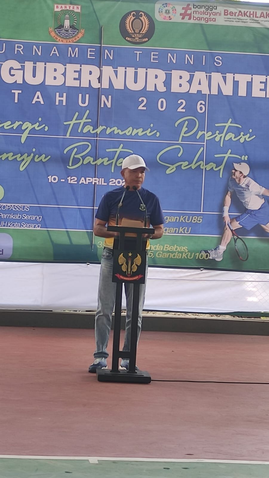 Banten,-Dinas Kepemudaan dan Olahraga Provinsi Banten menggelar Turnamen Tenis Piala Gubernur Banten Tahun 2026 yang berlangsung selama tiga hari, mulai 10 hingga 12 April 2026. Turnamen ini secara resmi dibuka oleh Andra Soni pada Jumat (10/4/2026) di Stadion Grup I Kopassus Kota Serang dan dihadiri unsur Forkopimda Provinsi Banten.