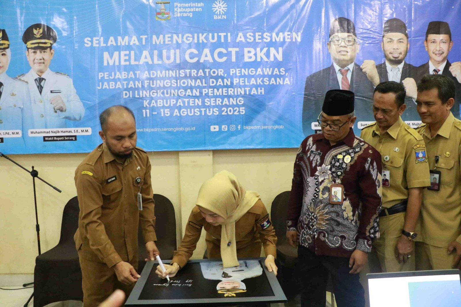 Bupati Serang Ratu Rachmatuzakiyah membuka Asesmen Metode Computer Assissted Competency Test (CACT) Badan Kepegawaian Negara (BKN) bagi pejabat administrasi, pengawas, jabatan fungsional dan pelaksana di lingkungan Pemerintah Kabupaten (Pemkab) Serang. Asesmen Aparatur Sipil Negara (ASN) merupakan salah satu dari 10 program prioritaa 100 hari kerja Bupati dan Wakil Bupati Serang, Ratu Rachmatuzakiyah dan Muhammad Najib Hamas.
