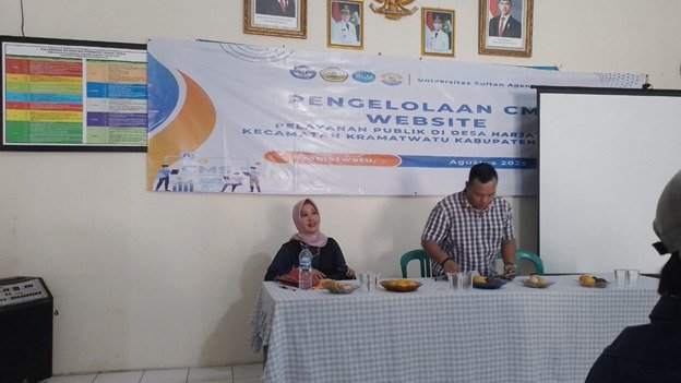 Kegiatan berlangsung di Aula Desa Harjatani mulai pukul 13.00 hingga 16.00 WIB, diikuti oleh 30 peserta yang terdiri dari aparatur desa, pengelola website, serta perwakilan RT dan RW. Pelatihan dipandu langsung oleh tim pengabdian dari Untirta yang terdiri atas Dr. Ipah Ema Jumiati, S.Ip., M.Si, Bagus Dwi Cahyono, M.Pd., dan Royan Habibie, M.Kom., dengan pendampingan dua mahasiswa, Izal Ihsani dan Aditya Rahman.