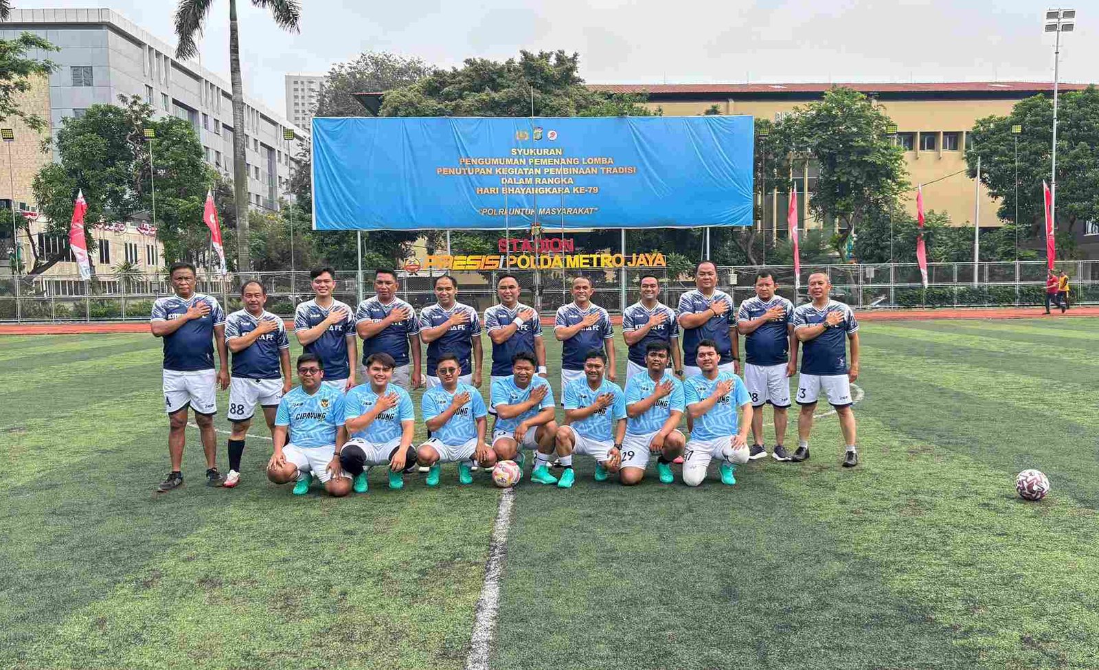 Pertandingan persahabatan mini Soccer tersebut antara tim Intel Polda Metro melawan tim muda Cipayung Plus DKI berlangsung seru di lapangan Presisi Polda Metro Jaya. Pertandingan yang digelar selasa tanggal 15 Juli 2025 dalam rangka menjalin persahabatan ini juga untuk menguji fisik anak2 muda Cipayung Plus DKI.