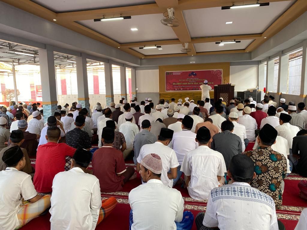Hadir langsung pada pelaksanaan sholat Ied tersebut, Kepala Rutan Pandeglang Jupri serta Pegawai Rutan Pandeglang.