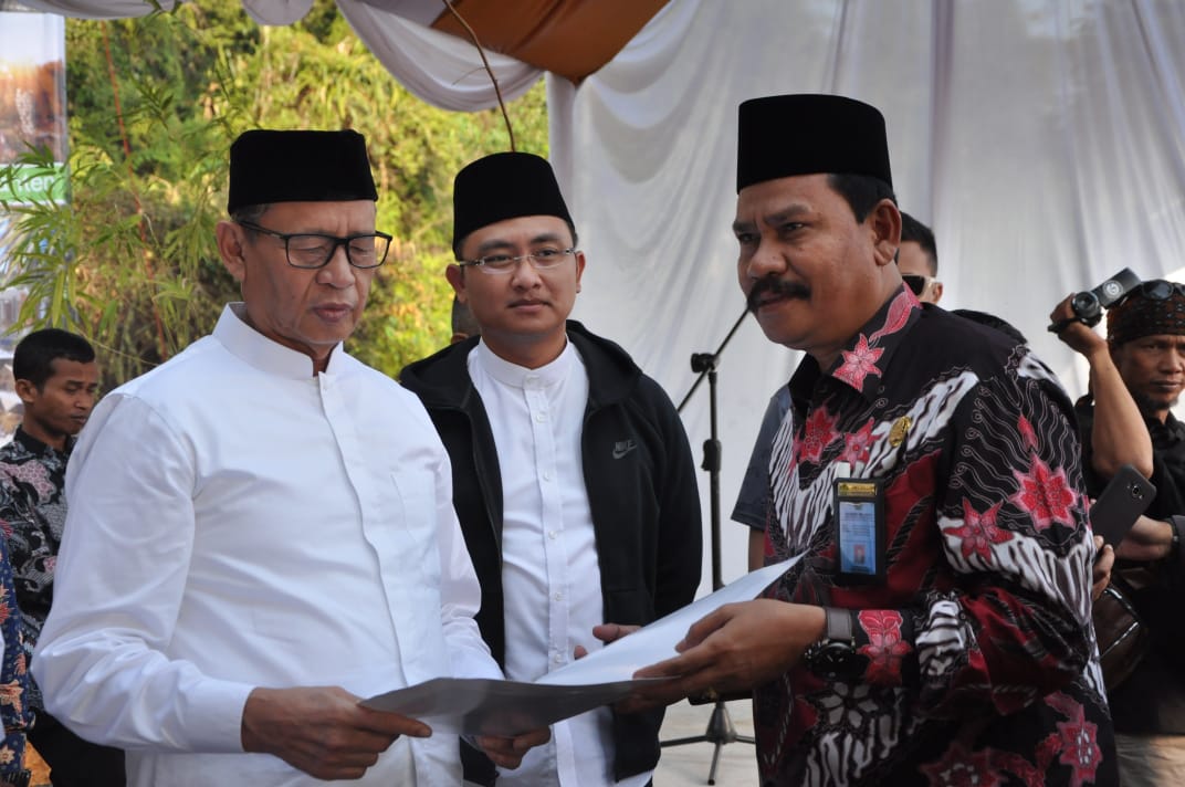 Dalam kesempatan itu juga dilakukan penyerahan sertifikat arah kiblat oleh Kakanwil Kemenag Banten A Bazari Syam kepada Gubernur