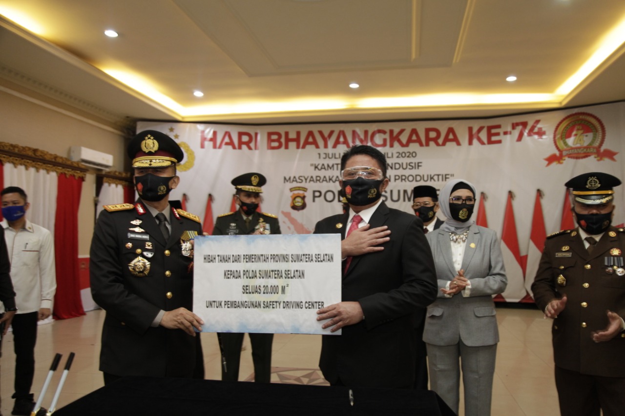 ” Hibah lahan ini kita berikan untuk pembangunan gedung Safety Driving Center (SDC). Harapan kita tentu kinerja aparat kepolisian menciptakan kamtibmas di Sumsel akan semakin baik ke depan,” ujar HD usai acara.