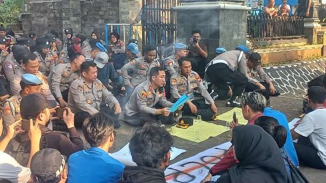 Menanggapi aksi tersebut, Kapolres Purwakarta AKBP I Dewa Putu Gede Anom Danujaya turun langsung menemui massa.
