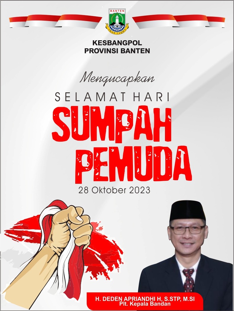 Kesbangpol Provinsi Banten Mengucapkan Selamat Hari Sumpah Pemuda28 Oktober 2023 | 08:55 WIB06 Desember 2023 | 08:56 WIBoleh Redaksi-oleh RedaksiBaca Juga Presiden Jokowi Apresiasi Pembangunan Pabrik Amonium Nitrat untuk Mendorong Kemandirian PanganJangan LewatkanHari Jadi ke-499 Kabupaten Serang, Bupati Ratu Zakiyah Salurkan Ratusan Paket SembakoDari Mandalika untuk Dunia: Kahf Dampingi Juara MotoGP Marc MárquezH. Ahmad Badri Maulana, B.A Aktivis Pembentukan Provinsi BantenTanamkan Nilai Ibadah Sejak Dini RA Bina Warga Kota Serang Mengikuti Manasik HajiPemkab Serang dan Uni Emirat Arab Jajaki Peluang Kerjasama