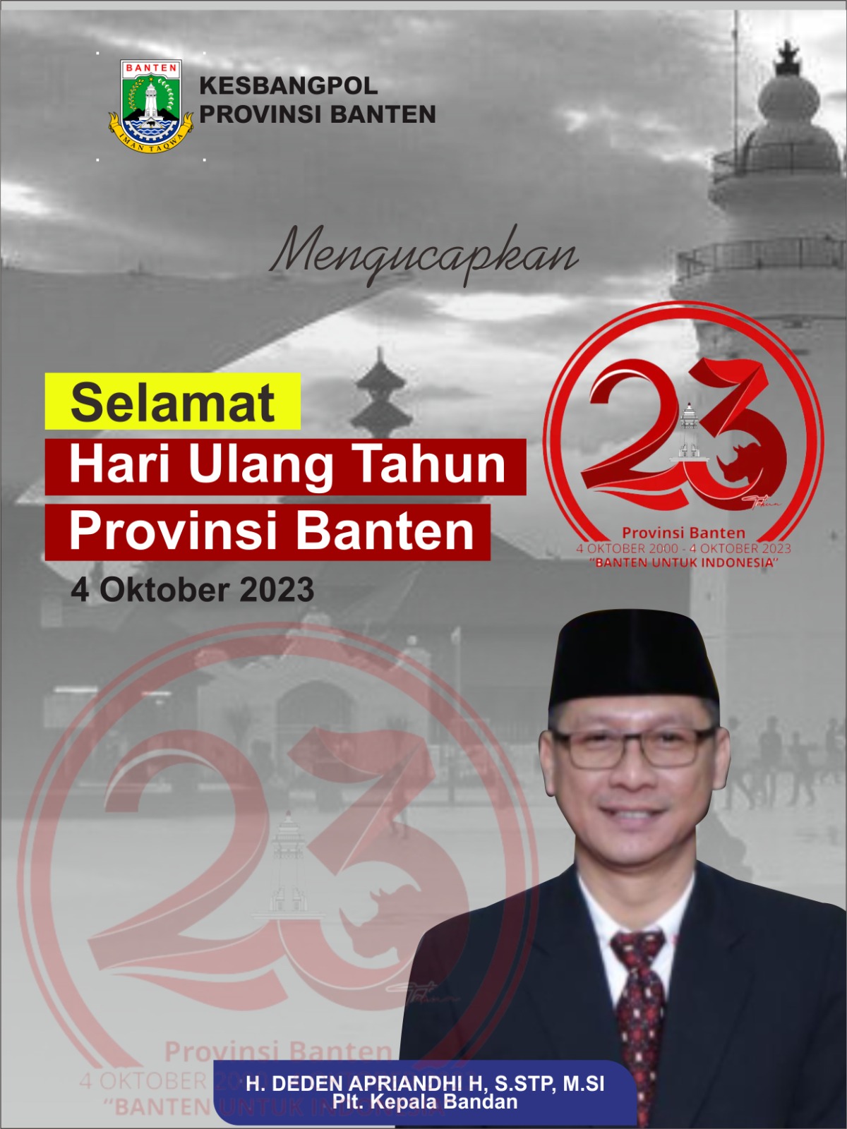 Kesbangpol Provinsi Banten Mengucapkan Selamat Hari Ulang Tahun Provinsi Banten Ke-2304 Oktober 2023 | 16:23 WIB30 November 2023 | 16:24 WIBoleh Redaksi-oleh RedaksiBaca Juga Kemendagri Turut Berduka Cita, Musibah Jatuhnya Lion Air JT 610Jangan LewatkanPWI Pusat Gelar Orientasi Jelang Pelantikan Pengurus 2025–2030Hari Jadi ke-499 Kabupaten Serang, Bupati Ratu Zakiyah Salurkan Ratusan Paket SembakoDari Mandalika untuk Dunia: Kahf Dampingi Juara MotoGP Marc MárquezH. Ahmad Badri Maulana, B.A Aktivis Pembentukan Provinsi BantenTanamkan Nilai Ibadah Sejak Dini RA Bina Warga Kota Serang Mengikuti Manasik Haji