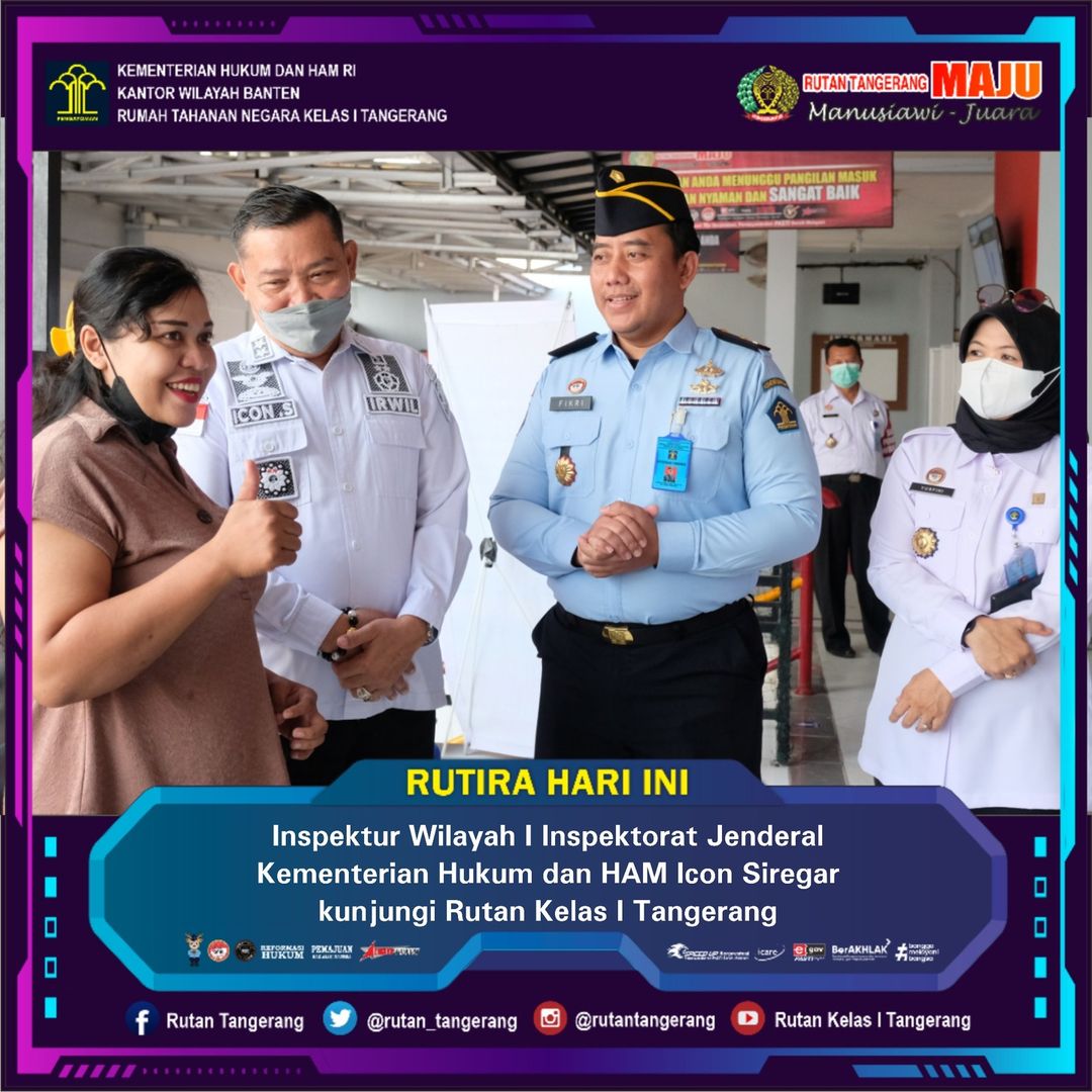 TANGERANG – Inspektur Wilayah I Kemenkumham RI Icon Siregar melakukan kunjungan kerja ke Rutan Kelas I Tangerang di dampingi Kepala Divisi Administrasi Sri Yusfini Yusuf beserta jajaran. Rabu (27/07/2022).