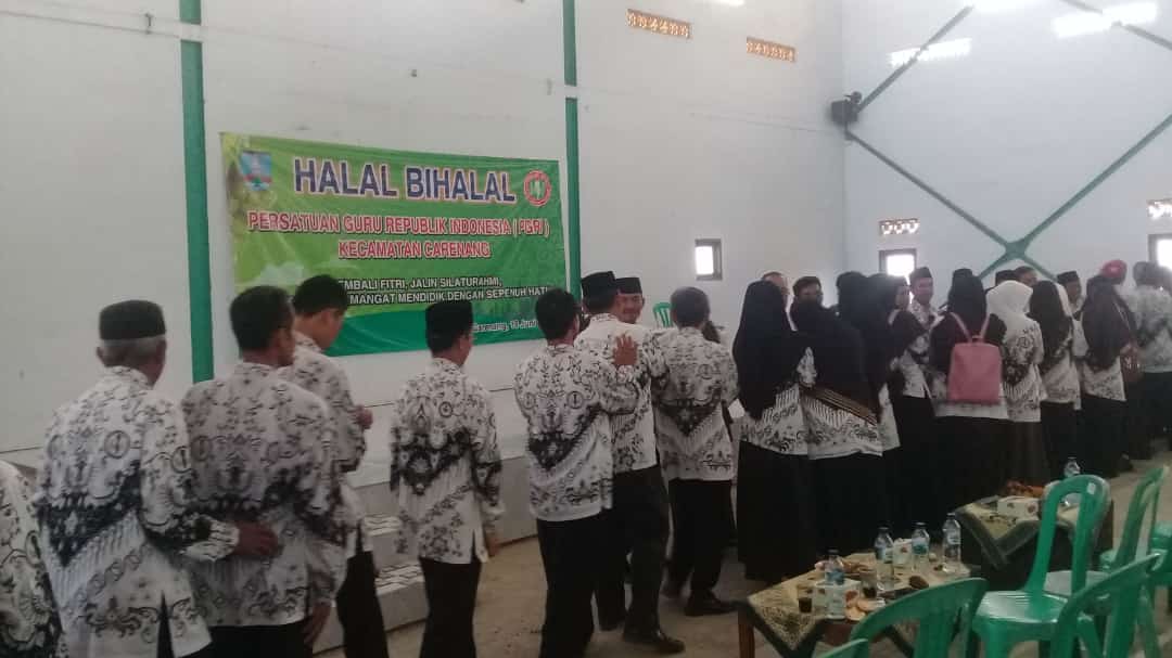 Kegiatan halal bihalal yang bertajuk ‘Kembali Fitri, Jalani Silaturahmi, Tingkatkan Semangat Mendidik Dengan Sepenuh Hati’ ini dihadiri Ketua PGRI Kecamatan Carenang, Mustofa, beserta hampir seluruh anggota PGRI Kecamatan Carenang.