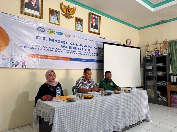 Harjatani, Kramatwatu – 23 Agustus 2025 – Sebagai tindak lanjut dari kegiatan koordinasi awal yang dilaksanakan pada 13 Agustus 2025 lalu, Tim Pengabdian kepada Masyarakat Universitas Sultan Ageng Tirtayasa (Untirta) menggelar Pelatihan Tahap Pertama di Desa Harjatani pada Sabtu, 23 Agustus 2025. Pelatihan ini mengangkat tema pengelolaan website desa berbasis CMS (Content Management System) dan mendapat sambutan luar biasa dari perangkat desa maupun warga yang hadir.