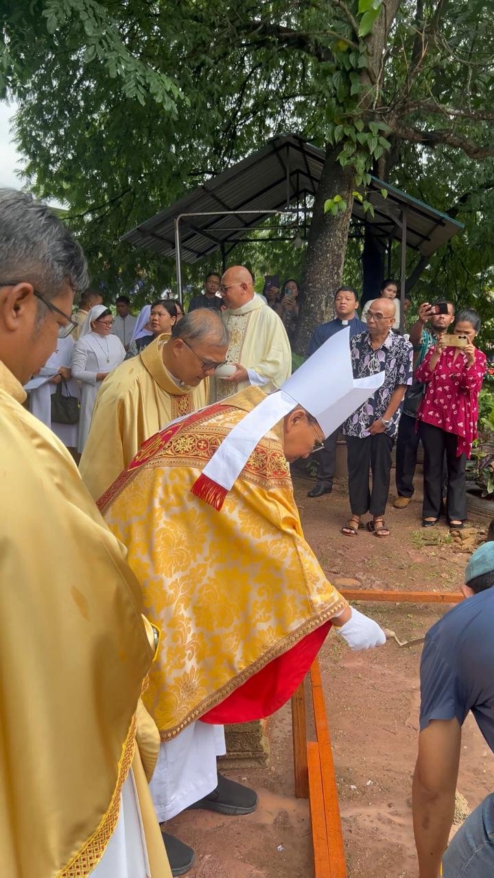 Batam, 18 Mei 2025 – Ketua Badan Pengurus Yayasan Karina KWI, Mgr. Aloysius Sudarso SCJ, memimpin peletakan batu pertama pembangunan Balai Latihan Kerja (BLK) dan Pusat Informasi Migran di Shelter St. Theresia, Batam. Pembangunan ini merupakan hasil kerja sama antara Caritas Indonesia dan Komisi KKP-PMP Keuskupan Pangkalpinang.