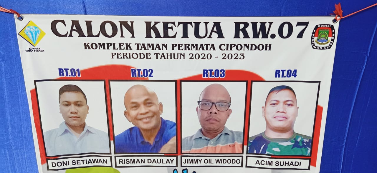Acara pemilihan Ketua RW tersebut dimulai pada pukul 7.30 pagi, dengan jumlah surat suara 340, yang diperebutkan oleh 4 calon kandidat. Nomor Urut 1 Doni Setiawan, Nomor Urut 2 Risman Daulay, Nomor Urut 3 Jimmy Oil Widodo, dan Nomor Urut 4 Acim Suhadi.