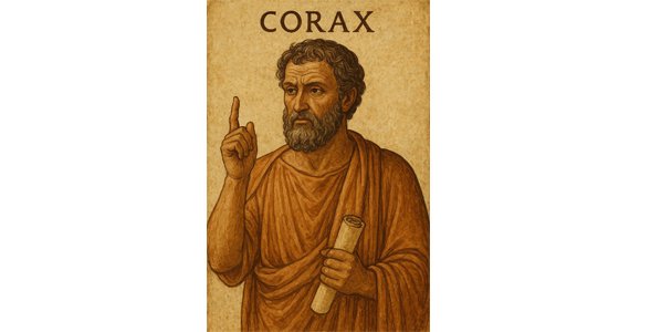 Yunani bisa disebut sebagai tempat pertama pengkajian proses pernyataan antarmanusia, yang disebut rhetorika itu. itu. Tokoh peletak dasar retorika adalah Corax (guru) dan Tisias (murid), di Kota Syracuse (Sisilia). Mereka dikenal sebagai perintis retorika, terutama – ketika itu – dibutuhkan di pengadilan. Guru dan murid ini menyusun struktur pidato (orasi), sebanyak lima bagian, terdiri dari pendahuluan, narasi, argumentasi, sangagahan, dan penutup.