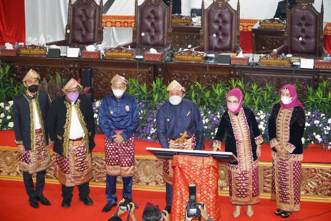 Selain rapat paripurna, ada hal berbeda yang dilakukan pada momen berharga tersebut. Dimana, pada kegiatan yang berbalut nuansa kental budaya Sumsel itu, Gubernur Sumsel H Herman Deu dan Wakil Gubernur H Mwardi Yahya juga melaunching Peraturan Daerah (Perda) tentang Arsitektur Bangunan Gedung Berornamen Budaya Sumsel.