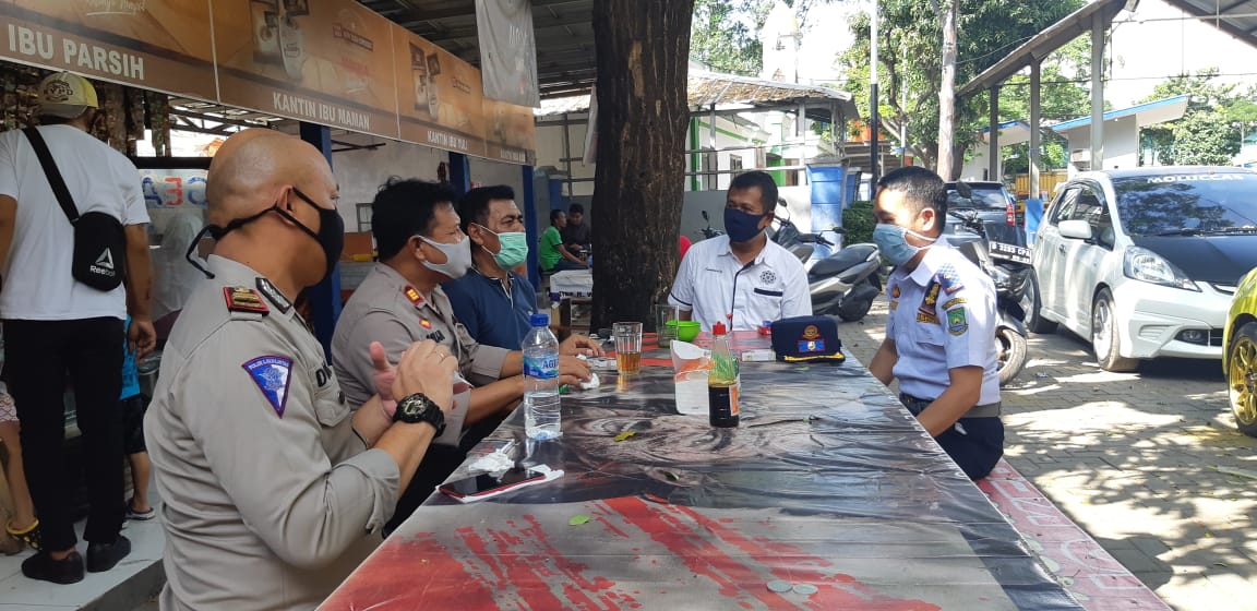 Waka Polsek Batu Ceper, AKP Mujiharja, SH, didampingi oleh Kanit Lantas IPTU Dikie Wahyudi, SH, dan Kanit Intelkam IPDA Bambang Antoro, SH, mennyambangi UPT KIR DLLAJR Kota Tangerang untuk menyampaikan pesan pesan kepada Kamtibmas dengan situasi New Normal tetap menjaga pelayanan uji KIR.