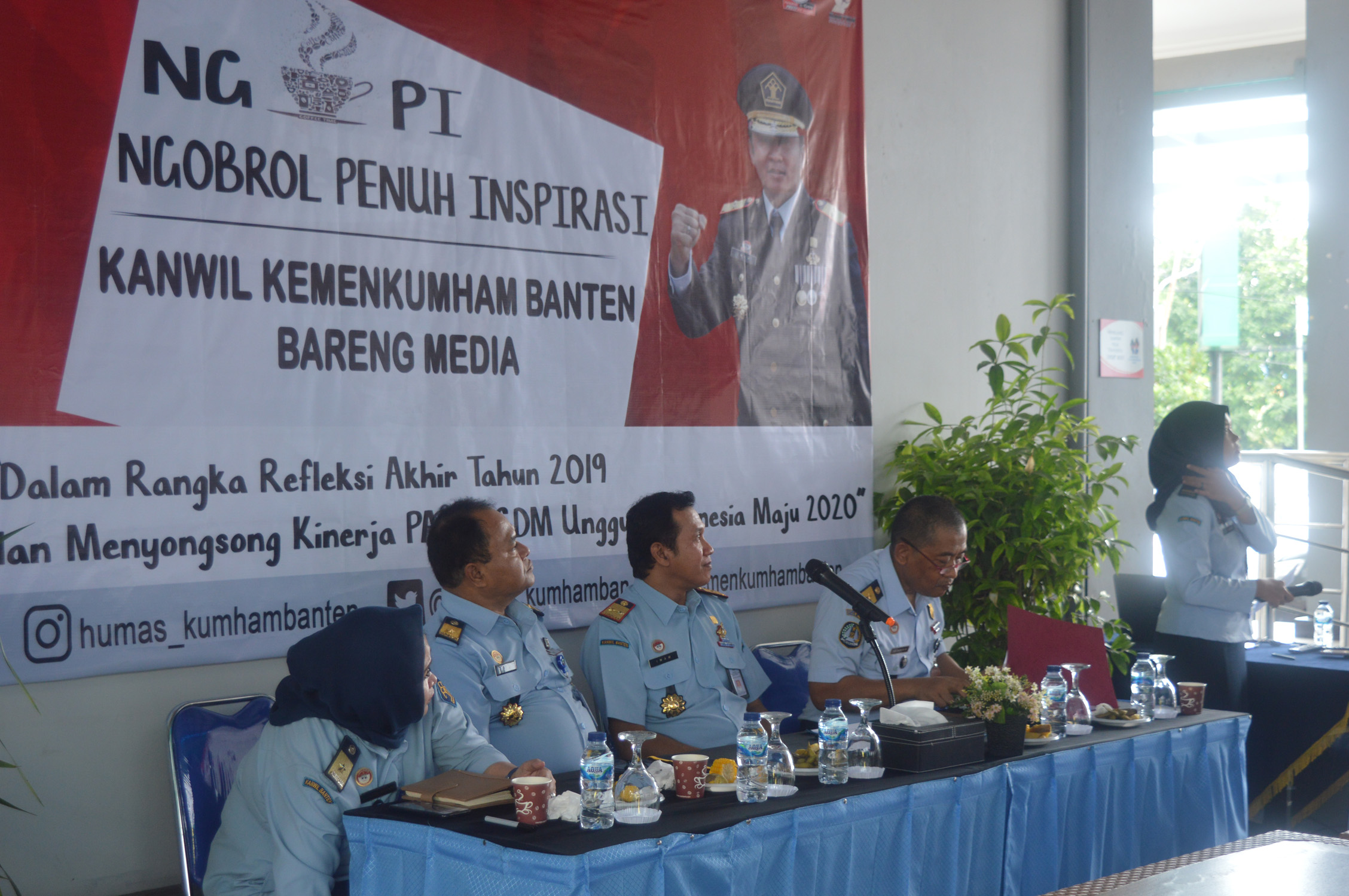 Ngopi yang bertajuk “Refleksi Akhir Tahun 2019 dan Menyongsong Kinerja PASIT SDM Unggul Indonesia Maju 2020” ini dihadiri oleh Kepala Kanwil Kemenkumham Banten Drs. Imam Suyudi, Bc.IP., S.H., M.H., didampingi oleh Kepala Rutan Serang Anton, Kepala Lapas Cilegon Heri Aris, Kepala Imigrasi Cilegon Edisong, Kepala Rutan Pandeglang Rino Soleh Sumitro, Kepala Rupbasan Serang Muhamad Nurseha, dan Kepala Bapas Serang Taufik Prabowo.