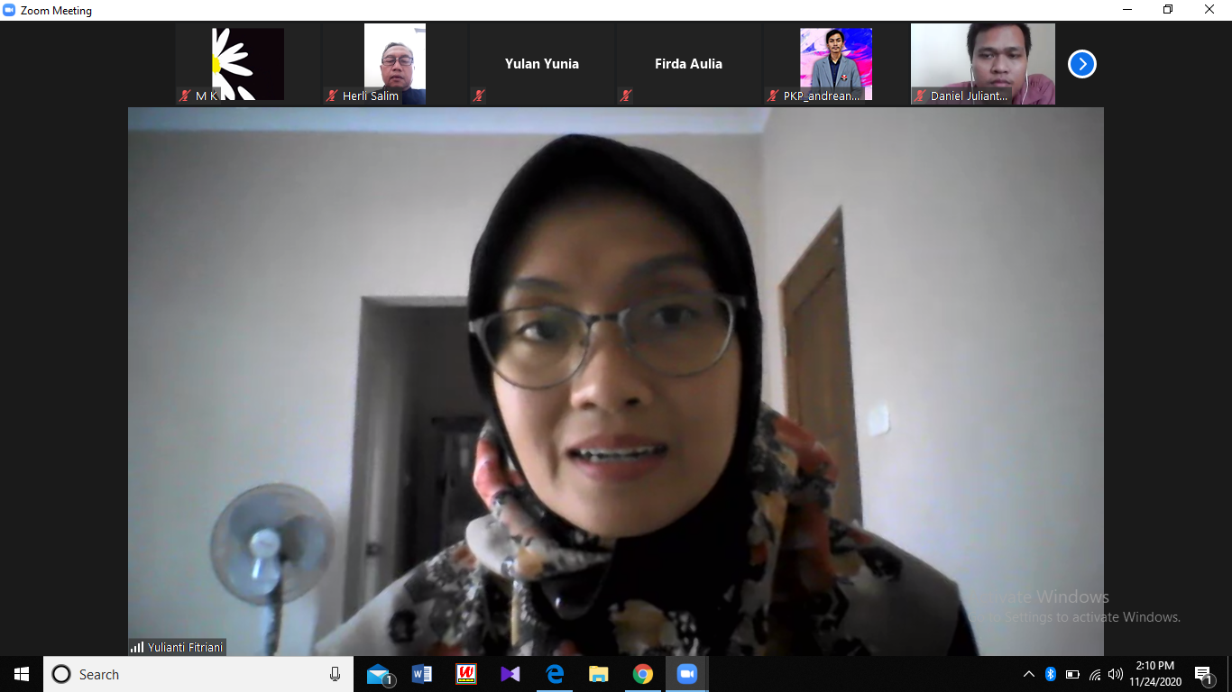 Kemudian, Yulianti Fitriani selaku DPL, memaparkan serta menjelaskan maksud, tujuan, sasaran serta program-program yang direkomendasikan untuk dilakukan selama kegiatan KKN di masa pandemi oleh mahasiswa semester 7 yang telah mengontrak mata kuliah KKN.