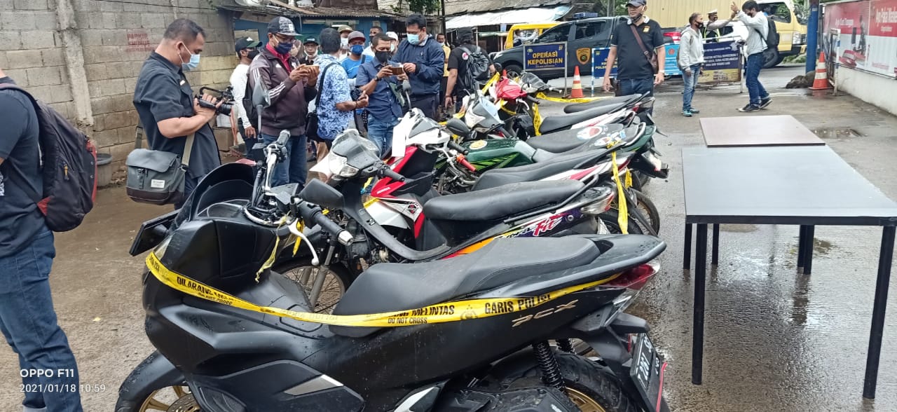 “Pengungkapan berawal dari informasi masyarakat bahwa sering terjadi transaksi penjualan kendaraan sepeda motor yang tidak dilengkapi dengan surat-surat di Rest Area Km.14 Tol Tangerang–Jakarta,” Kata Kapolres Metro Tangerang Kota Kombes Pol Deonijiu De Fatima saat jumpa pers di Mapolsek Cipondoh, Senin (18/1/2021).