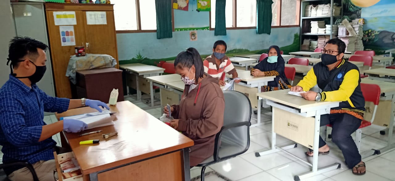 Acara tersebut mengikuti protokol kesehatan PSBB seperti cuci tangan pakai sabun, jaga jarak, fisik, menggunakan masker, tes suhu tubuh, tangan disemprot dengan hand sanitizer, baru kemudian diizinkan masuk ruangan untuk penyerahan kupon dan mengambil BLT. Kegiatan ini berjalan lancar, tertib, aman dan kondusif.