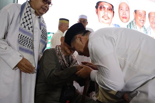 KOTABEKASI – Para tokoh dan jamaah sambut hangat kehadiran Wakil Wali Kota Bekasi Abdul Harris Bobihoe saat menghadiri kegiatan Solat Shubuh Keliling (Suling) sekaligus Haul Guru tercinta Almagfuriah abuya KH. Abubakar Jamal, HA ke 27 dan Haul Alm KH. Hairuddin Abubakar ke 9 di Aula Yayasan Al Barokah Jatimakmur, Pondokgede, Kota Bekasi.