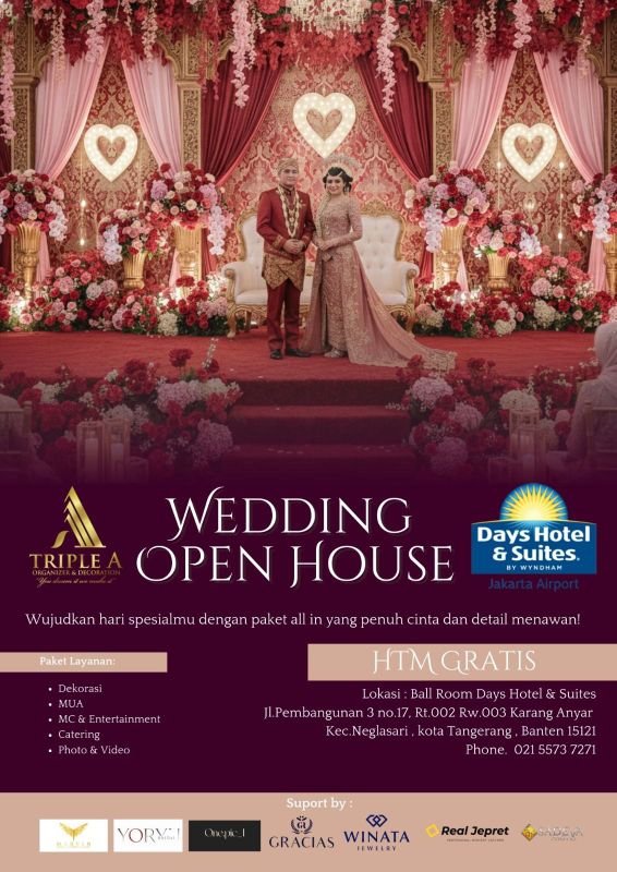 “Kami ingin memberikan pengalaman yang berbeda bagi calon pengantin. Wedding Open House ini bukan sekadar pameran, tetapi kesempatan untuk melihat langsung konsep pernikahan yang bisa mereka wujudkan di Days Hotel & Suites by Wyndham Jakarta Airport,” ujarnya.